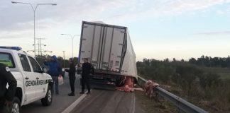 El tenso momento tuvo lugar en el sur de Rosario. Allí un vehículo volcó con 200 medias reses y cientos de vecinos, que pretendían robar la carga, fueron reprimidos por Gendarmería.