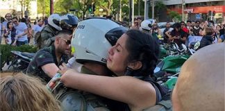 Conmovedor: un carabinero llorando y una manifestante lo abraza