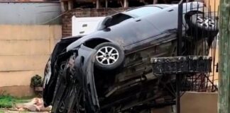 Una mujer debió ser rescatada por bomberos luego de quedar atrapada en su auto. El otro involucrado fue un hombre que también debió recibir ayuda médica.