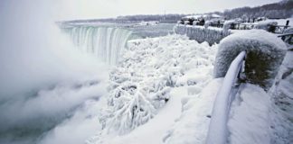 El frío es de tal magnitud que las cataratas del Ni´pagara quedaron totalmente congeladas. Las bajas temperaturas provocaron nevadas en el sur del país.