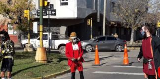 Payasos del circo varado en Santa Fe alegran las caminatas recreativas
