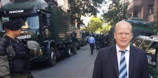 El flamante diputado se fotografió entre los numerosos camiones de Gendarmería que blindan al Congreso y fue testigo de las agresiones entre las fuerzas de seguridad y los diputados.
