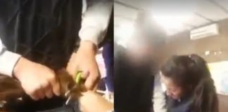 Sucedió ayer por la tarde en una escuela en la ciudad de San Genaro. Una alumna, constantemente asediada por sus compañeros, fue filmada mientras le cortaban el pelo dentro del aula.