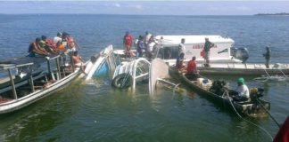 Defensa Civil, Policía del Chubut y Bomberos Voluntarios trabajan en lugar desde este domingo en la búsqueda de los dos ocupantes de la embarcación que aún no fueron encontrados. Uno de ellos es menor.