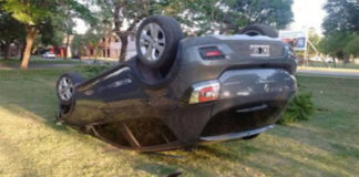 Un hombre de 32 años que conducía un Renault Sandero terminó volcando dentro del predio luego de pasar por un gran badén. No hubo heridos de gravedad.