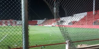 Hinchas leprosos rompieron baños y otras instalaciones del 15 de abril tras la derrota frente a Villa Mitre de Bahía Blanca. Además, hirieron a cinco policías.