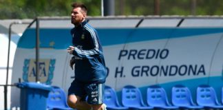 El defensor de Colón estuvo en la concentración de Ezeiza con Messi y compañía, aprovechando el parate en el torneo local. El mensaje de aliento para el equipo.