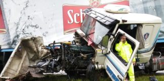 Esta mañana, un camión que tenía como destino la Cervecería Santa Fe, terminó impactando contra el guardarrail.