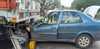 El accidente ocurrió en horas del mediodía. Allí un matrimonio y su hija de tres años quedaron atrapados en el vehículo y debieron ser rescatados por los bomberos.