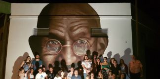 NexoDiario lo encontró trabajando cuando comenzaba a realizarlo en Derqui y Dorrego: 48 horas después, el artista junto al espacio holístico Aysén y vecinos del barrio, lo inauguraron.