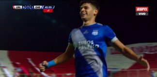 Sobre el final del clásico, el centro delantero conectó un centro y la mandó al fondo de la red, pero le cobraron offside. Era el empate para Colón frente a Unión.