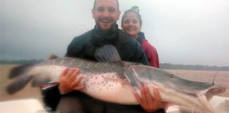 Una pareja de la ciudad de San Justo pescó un surubí de 40 kilos en Paso de la Patria, Corrientes. Después de medirlo, pesarlo y de sacarse unas fotos, devolvieron al pez al agua.