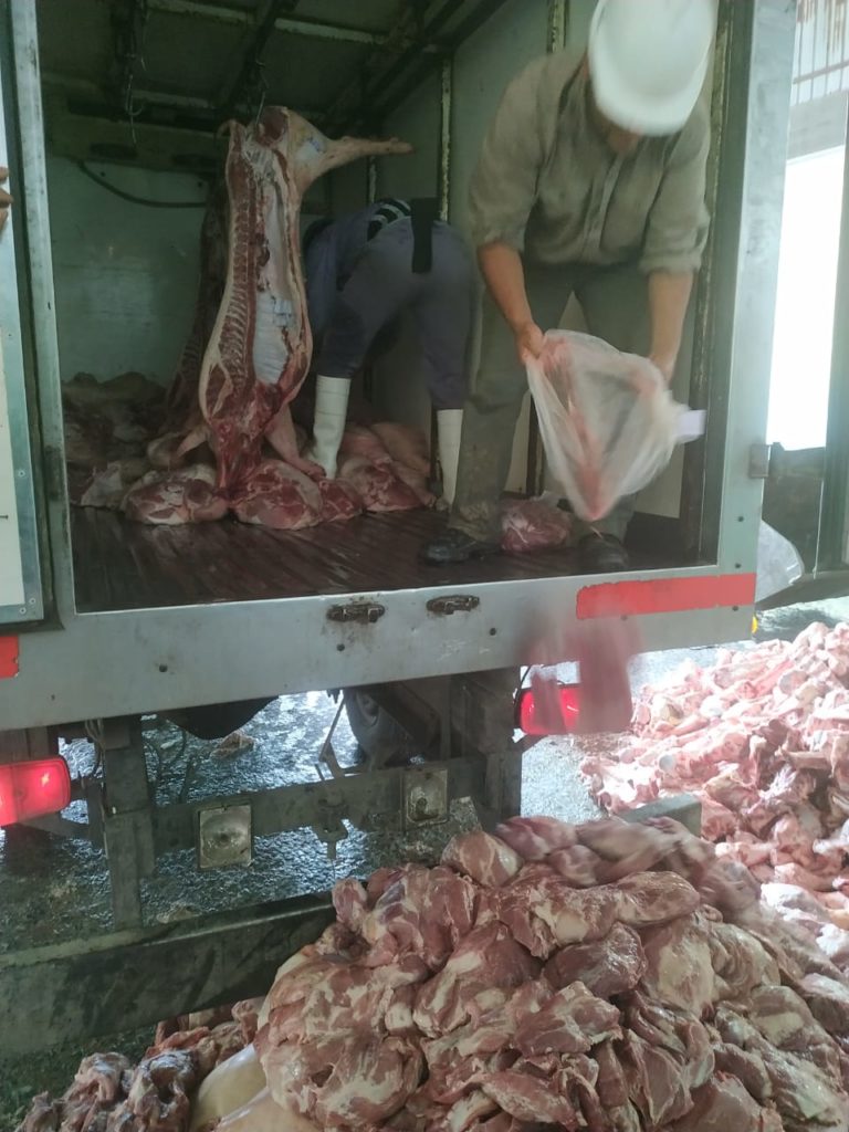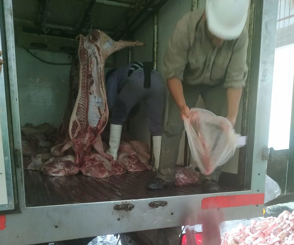 Más de 2 toneladas y 6 medias res de carne de cerdo fueron decomisados en un operativo realizado por la Policía Vial con colaboración de agentes del SENASA.