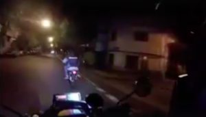 El video parece sacado de una película, pero fue grabado por un policía de Rosario, cuando intentaba detener a dos jóvenes en moto que intentaron eludir un control de tránsito.
