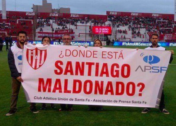 Antes del inicio del encuentro, se exhibió una bandera con el escudo del club y de la Asociación de Prensa de Santa Fe que decía: “¿Dónde está Santiago Maldonado?”, en referencia al joven artesano que desapareció presuntamente el 1 de agosto durante una marcha mapuche, en el sur del país.