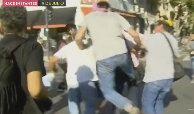 En medio de la protesta y transmitiendo en vivo por la Avenida 9 de Julio, un puñado de personas lo empezaron a insultar y a gritar, por lo que decidió alegarse del lugar, momento en el cual recibió golpes de puño, patadas, botellazos y escupitajos.