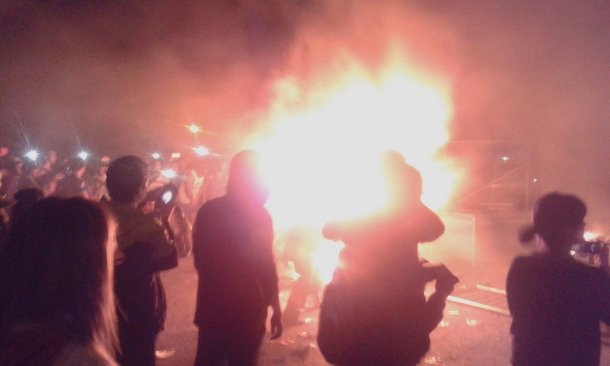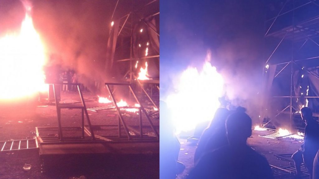 Tras ese episodio, un grupo incendió un sector del escenario, desde donde se operan las luces y el sonido de los shows.
