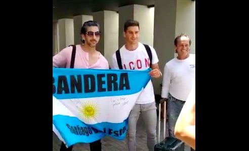 Lo particular es que mientras se metía casi en silencio, lo frenaron dos turistas que paseaban por Estados Unidos con una bandera argentina que firmó. Pero la celeste y blanca tenía la inscripción de dónde eran esas personas: Bandera, en Santiago del Estero, a sólo 60 kilómetros de su ciudad, Tostado. A 10 mil kilómetros de distancia de Argentina, el goleador se encontró con unos vecinos de localidad a quienes saludó antes de meterse de lleno en la concentración.